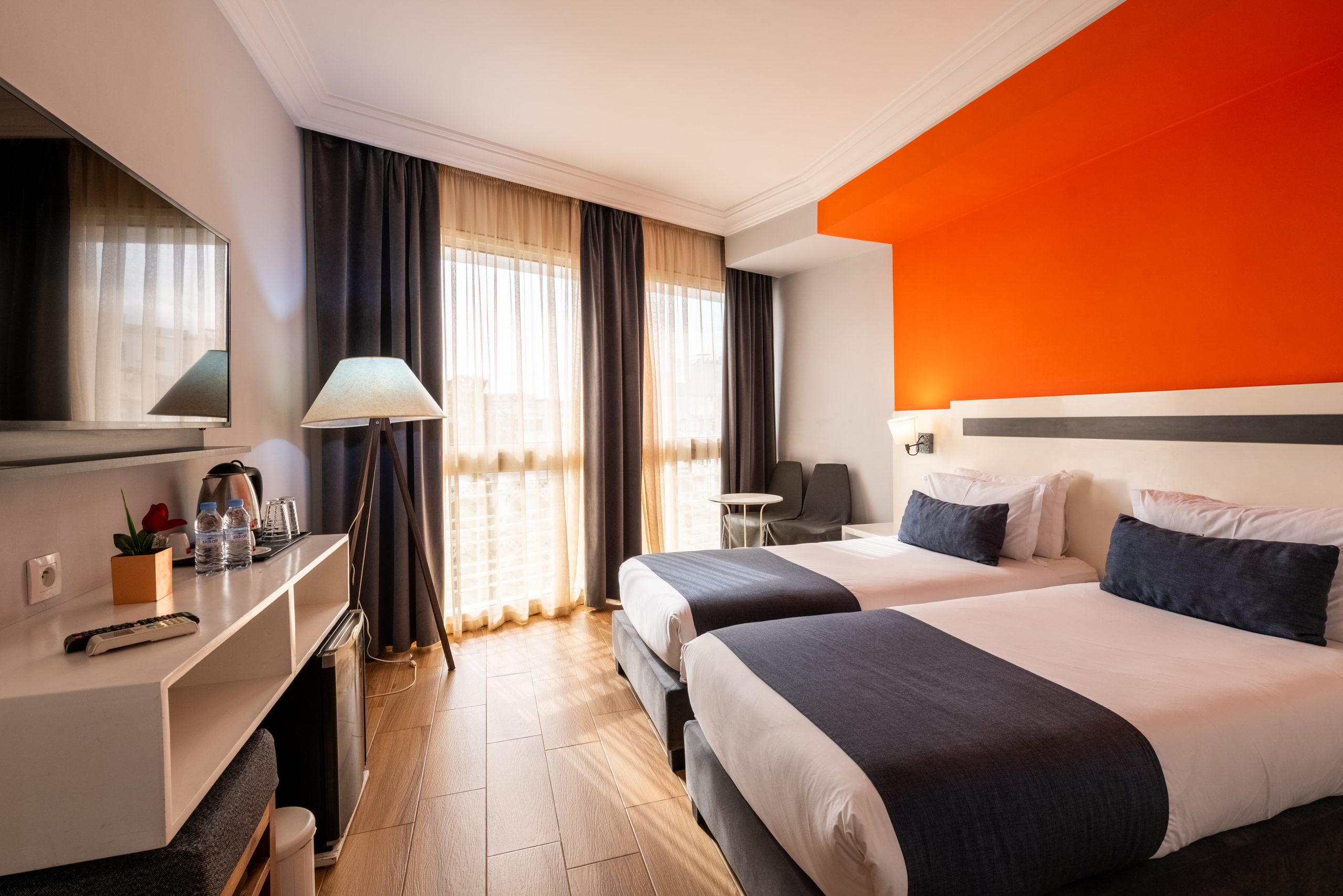Spacious, bright, and elegantly decorated, our Superior Rooms of approximately 25 m² offer a warm and relaxing atmosphere with a beautiful city view.