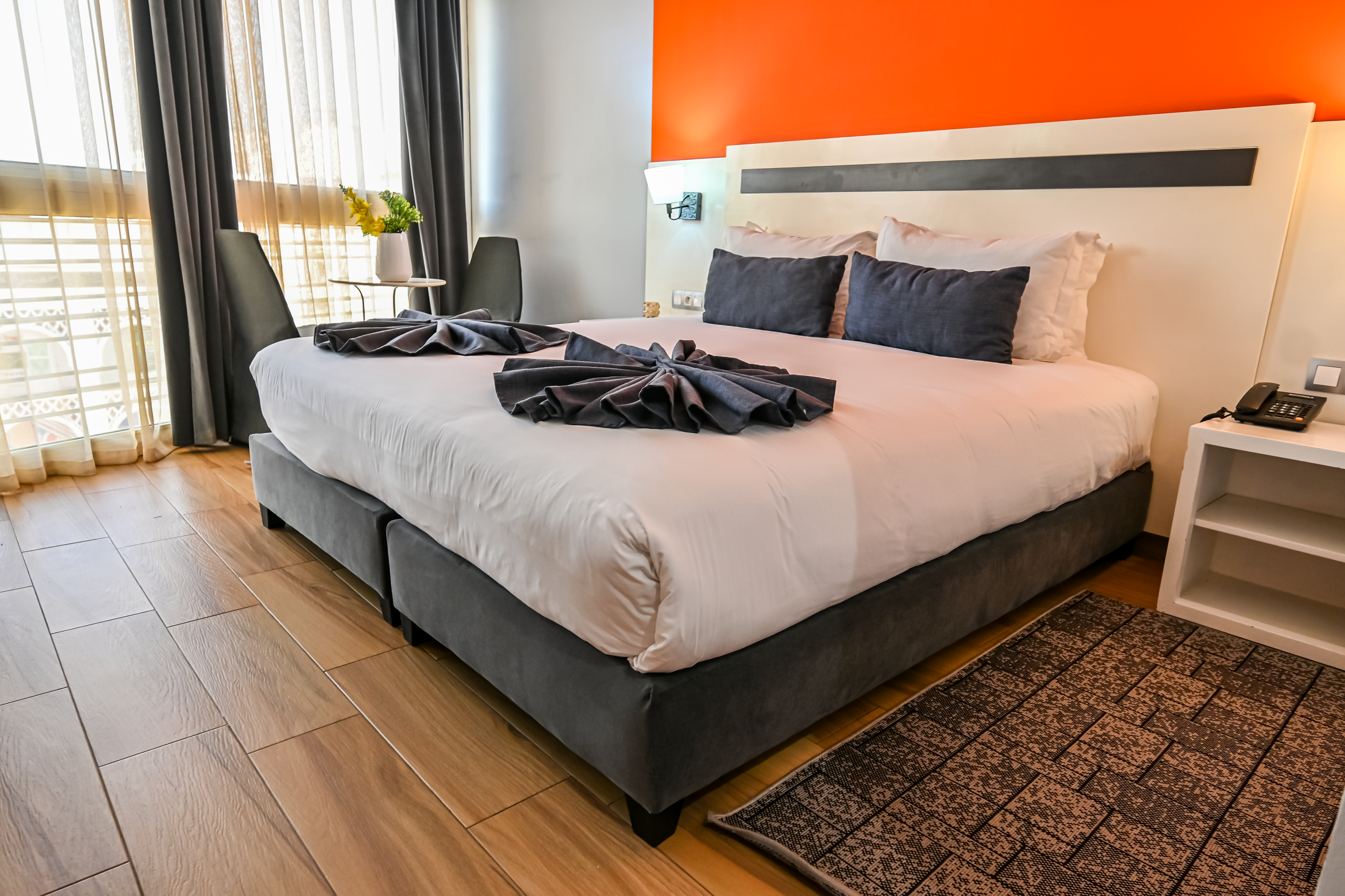 Spacieuses, lumineuses et décorées avec élégance, nos chambres Supérieures d’environ 25 m² offrent une atmosphère chaleureuse et reposante, avec une belle vue sur la ville.