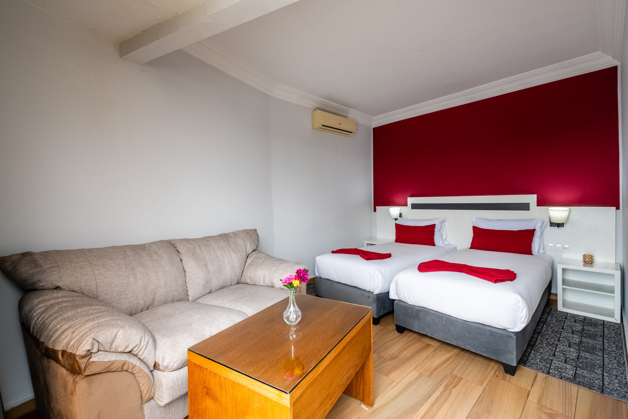 Deux chambres séparées (1 lit double + 2 lits simples)